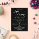 A sophisticated black wedding after-party invitation featuring elegant white typography and a modern minimalist layout. The design highlights a stylish handwritten “After Party” script paired with classic serif lettering for a refined, upscale look. Perfect for couples hosting a private ceremony followed by a celebration, this invitation clearly displays the couple’s names, event details, date, time, location, and RSVP information. A timeless and classy design ideal for weddings, receptions, and evening celebrations.
