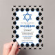 Invitación acrílica con tema de fútbol Bar Mitzvah con fondo de fútbol y acentos azules. Esta invitación de plástico acrílico de fútbol Bar Mitzvah es elegante y moderna. Esta invitación acrílica al Bar Mitzvah, con temática de fútbol, presenta un fondo de balón negro y blanco con una Estrella Judía de David. Los colores de este único diseño inspirado en el tema del fútbol Bar Mitzvah son el azul, el negro y el blanco. El nombre de tu hijo está en un tipo de letra negrita. Si estás pensando en albergar un Bar Mitzvah con temas de fútbol deportivo, entonces esta invitación de larga duración de acrílico keepsake del único bar de fútbol Mitzvah puede ser la elección perfecta.