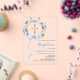 Invitaciones Acrílicas Blue floral wreath cross bow boy baptism clear