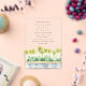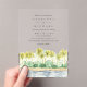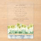 Esta moderna Invitación a la Boda acrílica presenta un texto de moda junto con un bonito cuadro acuático de palmeras tropicales a lo largo de la playa. Elija entre una tarjeta acrílica transparente o congelada. Pintura inspirada en la costa de Santa Bárbara. Elementos coincidentes disponibles.