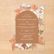 El rústico Terracota Boho Pampas Orquídeas Invitación a la Boda con Arcos de Boda presenta Grasa Pampas, Orquídeas Blancas y Algodón con Marco Rústico Boho Terracotta y Adorada Atrás