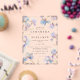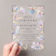 Esta elegante invitación de boda es perfecta para bodas de primavera y verano. Este diseño presenta un anillo de lirios de acuarela en tonos de lila y azul pervinclo. Toques sutiles de dorado agregan un elemento brillante y mágico.