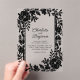 Crea un enunciado sofisticado con estas invitaciones de boda de acetato con borde floral elegante negro. Con un impresionante diseño de borde floral grabado en acetato transparente, estas invitaciones combinan el minimalismo moderno con la elegancia atemporal. Perfectas para bodas formales o románticas, personaliza tus detalles para crear un recuerdo único y lujoso para tu día especial.