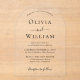 Invitación nupcial acrílica clara en forma de arco de moda con los nombres de la novia y el novio en una elegante tipografía serif y los detalles de su boda con letras sencillas y modernas.