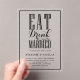 Celebra tu amor e invita a tus invitados con estilo con nuestra invitación a una boda acrílica de personalizable con la frase "Come, bebe y cásate". Este elegante y divertido diseño combina el acrílico moderno con la tipografía encantadora. Personalice sus nombres, fecha de boda y detalles adicionales. La frase alegre le da un sentido de alegría y celebración a su papelería boda, ideal para parejas que buscan algo único y memorable. Invite a sus invitados a comer, beber y casarse con esta elegante, divertida y moderna invitación a las bodas acrílicas de personalizable, una mezcla perfecta de elegancia, personalidad y celebración para su día especial.