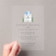 Impresione a sus invitados con esta invitación formal de boda de JessicaAmber. Esta tarjeta acrílica presenta un ilustracion acuarela de un castillo blanco y azul, que se puede reemplazar con una imagen del destino donde se casará (se prefiere el fondo transparente). Las elegantes letras de color azul oscuro en los caracteres serif y script muestran los nombres de la novia y del novio, así como los detalles del boda, incluyendo la ubicación, la fecha y la hora. Buscar la suite coincidente en mi colección. ⚠ Si desea editar la caligrafía y utilizar caracteres especiales, copiarla y pegarla desde esta página: bit.ly/Emeline-Script ⚠・・・ Para tarjetas de boda más elegantes, visite mi tienda Zazzle.com/EventsByJessicaAmber・・・ Para órdenes de personalizado, envíeme un mensaje en Zazzle