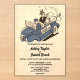 Esta vintage invitación a bodas con temas de historietas retro es ideal para un boda moderno. El antiguo diseño cuenta con un ilustracion de novios de los años 50 con un fondo acrílico claro.