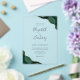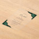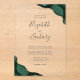 Dos rincones de esta elegante y moderna invitación a la boda cuentan con una ágata color de agua verde esmeralda adornada con un falso purpurina de oro. El texto del personalizable combina escritura a mano, copperplate y cursiva en gris carbón sobre un fondo claro.