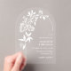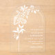 Añada un toque de elegancia moderna a su papelería boda con estas impresionantes invitaciones acrílicas con un diseño de arco botánico blanco. El delicado ilustracion floral crea un aspecto atemporal y sofisticado, perfectamente complementado con la forma acrílica arcaica. Ideal para bodas minimalistas y contemporáneos, esta invitación única muestra maravillosamente los detalles de su boda en una tarjeta elegante y transparente. Completamente personalizable para satisfacer sus necesidades, esta es una pieza destacada para su día especial.