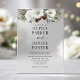 Celebra tu amor con esta elegante y moderna invitación acrílica boda de invierno, con un diseño transparente y elegante adornado con follaje verde y refinada tipografía minimalista. Perfecto para un boda de invierno o de inspiración forestal, esta invitación combina la belleza natural con el lujo moderno. El material acrílico claro añade un toque sofisticado y contemporáneo, ideal para celebraciones elegantes, románticas y atemporales.