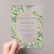 Diseño característico de la acuarela eucalipto suculentos bordes con salpicaduras doradas pintadas a través de las esquinas , acuarelas en tonos verdes. Elementos coincidentes disponibles en la colección