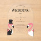 Invitación a una boda acrílica con un tema flamingo. Esta invitación incluye una novia flamingo y un novio flamingo. Simplemente agregue su información, añada esta invitación a su carrito y disfrute de su boda lleno de flamingo.