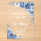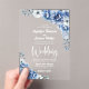 Invite a sus amigos y seres queridos a su boda para que presencie y celebre el comienzo de su viaje de toda la vida con esta elegante invitación floral de boda acrílica azul. El texto del personalizable le permite añadir sin esfuerzo los nombres de la novia y del novio, la fecha del boda y los detalles necesarios de su celebración.