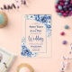 Invite a sus amigos y seres queridos a su boda para que presencie y celebre el comienzo de su viaje de toda la vida con esta moderna invitación floral de boda acrílica azul. El texto del personalizable le permite añadir sin esfuerzo los nombres de la novia y del novio, la fecha del boda y los detalles necesarios de su celebración.