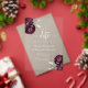 Esta elegante boda, salvo la tarjeta de fecha, incluye ramos de flores de color rojo burdeos, con una vegetación de imitación de Relieve metalizado plateado en dos esquinas sobre un fondo transparente y claro. El texto del personalizable combina fuentes suero gris plateado pálido, cursiva y letra manuscrita.