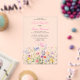 Invitación a la boda con flores silvestres en rosa, morado y naranja. Perfecto para un boda de primavera o verano. Las palabras se pueden cambiar para adaptarlas a sus propios detalles o requisitos