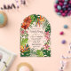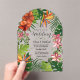Establece un tono vibrante para la celebración de tu isla con esta impresionante invitación de boda de acrílico transparente. Con flores y hojas hawaianas pintadas a mano en acuarela, incluyendo hibiscos brillantes y aves exóticas del paraíso, este diseño moderno en forma de arco es perfecto para una boda de destino, una ceremonia en la playa o un evento con tema tropical. El elegante marco botánico rodea tus detalles personalizados para un aspecto artístico y sofisticado.