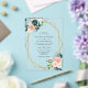 Invitación a la Boda Geométrica de Floral de Rubor, Marina Rustica de Acuarela. Bouquet de flores azul marino y Rubor rosadas con acento dorado