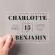 Haga una declaración con esta audaz invitación a una boda horizontal, con una tipografía llamativa y un diseño contemporáneo en blanco y negro. El diseño minimalista limpio es perfecto para las parejas modernas que aprecian la elegancia atemporal y una estética elegante y sofisticada. Ya sea que esté organizando un boda de una ciudad de moda o un evento nocturno formal, esta invitación marca la pauta para una celebración memorable. Diseñado para destacar, es a la vez elegante y versátil, atractivo para los que valoran el lujo y el diseño moderno.