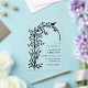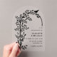 Celebre su día especial con estas elegantes invitaciones de boda de acrílico que presentan un pájaro negro posado en una delicada rama botánica. La forma acrílica arqueada añade un toque moderno y único, mientras que el diseño minimalista garantiza una sofisticación atemporal. Perfectas para bodas contemporáneas, estas invitaciones transparentes resaltan bellamente los detalles de su evento en un texto audaz y elegante. Totalmente personalizables para su boda, esta invitación seguramente impresionará a sus invitados y establecerá el tono para su gran día.