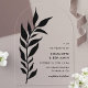 Haz una declaración audaz con estas invitaciones de boda modernas de acrílico con hojas negras en forma de arco. Con un diseño botánico elegante y llamativas hojas negras, esta invitación combina el estilo contemporáneo con un encanto minimalista. El material acrílico único en forma de arco añade un toque de elegancia, lo que la convierte en una opción perfecta para bodas modernas. Totalmente personalizables con los detalles de tu boda, estas invitaciones son una forma elegante de anunciar tu día especial.