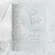 Invitaciones Acrílicas Boda Purpurina plateada Guardar la fecha
