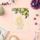 Este diseño presenta un arreglo elegante y sencillo de las iniciales personalizadas de la novia y el novio enmarcadas por ilustraciones vintage de cítricos y limones. El texto se coloca encima de las iniciales del nombre de la novia y del novio, que se muestran en tipografía de color amarillo. Este diseño amarillo, blanco y verde es sencillo pero elegante en todos los sentidos. La combinación de colores crea un estilo sofisticado, moderno y de moda. Elegante diseño de invitación transparente acrílico claro de boda con elementos modernos. También están disponibles artículos de papelería para bodas y otros formatos de invitación para bodas.
