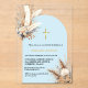 Una maravillosa invitación bautismal de bautismo con un tema del desierto. La parte delantera de esta tarjeta está decorada con un ramo de acuarela pintado a mano con pasto de pampas, hojas de palmera secas, vegetación eucaliptos, rosas rosas rosas de color rosa y orquídeas blancas. El nombre de la madre está escrito en un rosa oscuro similar a las flores. El lado inverso de las tarjetas tiene un fondo rosado con un patrón de diamante blanco. Ideal para las estaciones de primavera, verano, otoño e invierno