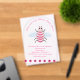 Esta impresionante invitación acrílica a Baby Shower muestra una imagen gráfica de una linda abeja de bebé rosa con piernas negras y ojos turbios. tiene un cuerpo confuso rosa pálido con rayas rosas brillantes y lindas antenas rosadas en su nublada cabeza. Sus delicadas alitas tienen un patrón azul pálido en las manos. El diseño también incluye girasoles rosados bonitos. Hay un texto personalizado para que puedas incluir el nombre de la Madre a Ser y todos los detalles importantes.
