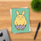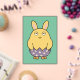 Una chica gordita, sin impresionar, vestida como conejito, mitad dentro de un huevo decorado—La Pascua nunca se ha visto tan aburrida!