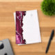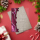 La arista izquierda de esta elegante y moderna invitación a la primera comunión cuenta con una acuarela de color burdeos bordeada por un falso purpurina de plata. Una cruz de Relieve metalizado plateado falsa aparece encima del texto del personalizable, que combina guiones de escritura a mano gris plateado, copperplate y tipografías cursivas en un fondo claro.