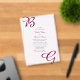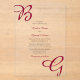 Este diseño presenta las iniciales de la novia y del novio en color burdeos como el foco principal del diseño. Las iniciales personalizadas del guión mediante la tipografía del tipo de letra del guión crean una combinación perfecta de modernidad y elegancia. Un sencillo personalizado minimalista otoño otoño o cualquier otro diseño de invitación a la boda en temporada con un moderno monograma de marrón burdeos. También están disponibles artículos de papelería para bodas y otros formatos de invitación para bodas. Para cambiar la posición de las iniciales, haga clic en el enlace "Haga clic para más personalizares" al personalizar los detalles.