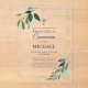 Celebrate a meaningful milestone with this elegant First Holy Communion acrylic invitation, designed with a timeless greenery leaf border and sophisticated navy blue lettering. The minimalist botanical design adds a fresh, natural touch while maintaining a refined and modern aesthetic—perfect for a memorable religious celebration.