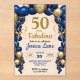 Bright and colorful blue and gold balloon arch any age acrylic birthday invitation, change the text yourself when you order