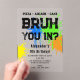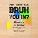 A teen boys "Bruh" themed birthday invitation using cool typography. A custom kids neon graffiti blue, green, yellow and orange "pizza, arcade and cake " teenage boys birthday invitation design perfect for any teens birthday party theme. Customize this "Bruh" birthday invitation with your own text and make it your own!