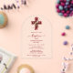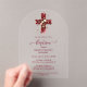 Burgundy Elegant Glitter Effect Floral Cross Christian Baptism Acrylic Invitation Design.