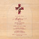 An elegant and sophisticated design centered on a floral cross with a gold glitter effect, highlighting deep burgundy tones that bring warmth, solemnity, and distinction. The illustration conveys devotion and refinement, combining Christian tradition with a modern and delicate aesthetic. Every detail of the cross and floral elements is carefully composed to create a visually harmonious invitation, reflecting the spiritual importance and beauty of the baptism ceremony. This design anticipates a memorable celebration full of faith, elegance, and meaning, evoking warm emotions in family and loved ones.