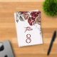 Elegant burgundy floral theme wedding table number featuring beautiful flowers.