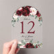 Invitaciones Acrílicas Burgundy Rubor Floral Boda número de tabla de arca