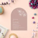This burgundy wedding invitation features a white line art cherry blossom branch on a transparent burgundy background and first names only.
