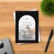 Invitación acrílica boda moderna con tu monograma y tus detalles sobre tu foto favorita dentro de un arco sobre un fondo negro. La plantilla incluye una superposición simple que permite que el texto aparezca sobre la imagen y se puede eliminar en la herramienta de edición de diseño. Este diseño sencillo y elegante, en blanco y negro clásico, es ideal para cualquier estilo boda.