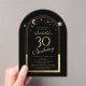 Astronomía del Celestial Black Gold Sun Moon 30th Birthday Acrylic Invitation presenta un elegante sol dorado, luna y estrellas con un marco dorado sobre un fondo negro. Adentro está tu personalizado la información de la invitación por trigésimo cumpleaños. Personalice editando el texto en los cuadros de texto. Diseñado por Evco Studio www.zazzle.com/store/evcostudio
