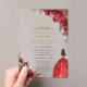 Invitaciones Acrílicas Chic Quinceañera Red Roses Flowers Floral Princess