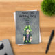 Esta invitación a la Fiesta del Aniversario de la Escarcha acrílica tiene un lindo chica de Gótico con el pelo verde negro vestido con un vestido negro con un gorra verde brillante, una telaraña y un tatuaje lunar en un fondo gris con un resplandor espeluznante. Personalizar todo el texto con las plantillas.