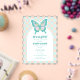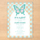 Chica de tablero de ajedrez Verde azulado de mariposa Baby Shower Invitación Ilustracion de mariposa verde azulada, rosa y amarilla con fondo de tablero de ajedrez verde azulado y arco.