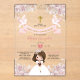 Invitaciones Acrílicas Chica floral rosa boho Primera comunión sagrada