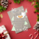 Baby shower de género neutral con copos de nieve grises y árboles invernales verdes que bordean un plato de galletas con chispas de chocolate y una taza de chocolate caliente