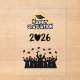Celebrate the monumental achievement of the Class of 2026 with this elegant and minimalist graduation design. Featuring a classic black silhouette of graduates joyfully throwing their caps into the air, this artwork captures the ultimate moment of success.