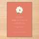 This is a minimalist style image featuring an elegant wedding invitation. The background is a soft, warm coral color that exudes warmth and sophistication. At the center, there's a beautifully detailed illustration of a white flower with green leaves, adding a touch of natural elegance to the design. The text is simple yet stylish, inviting guests to join Isabella & Patrick on their special day at Seaside Palms Resort in Naples, Florida. It feels like a serene and joyful celebration waiting to unfold—perfect for setting a romantic and welcoming tone.