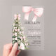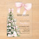 Invitación de cumpleaños de invierno con arco de coqueta rosa color agua.